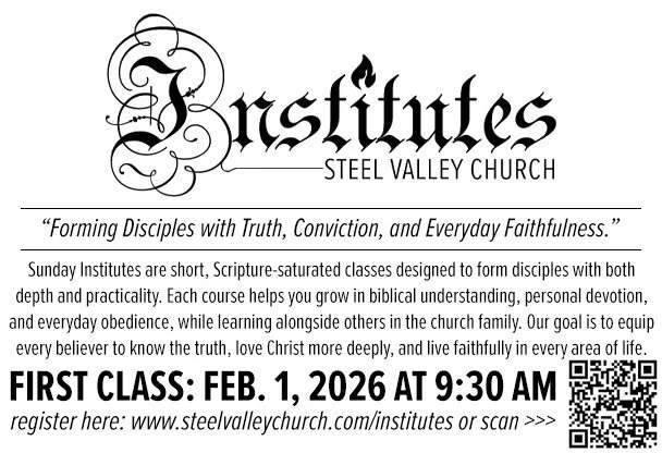 Sunday Institutes are short, Scripture-saturated classes designed to form disciples with both depth and practicality. Each course helps you grow in biblical understanding, personal devotion, and everyday obedience, while learning alongside others in the church family. Our goal is to equip every believer to know the truth, love Christ more deeply, and live faithfully in every area of life.